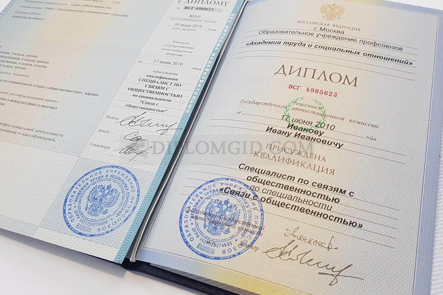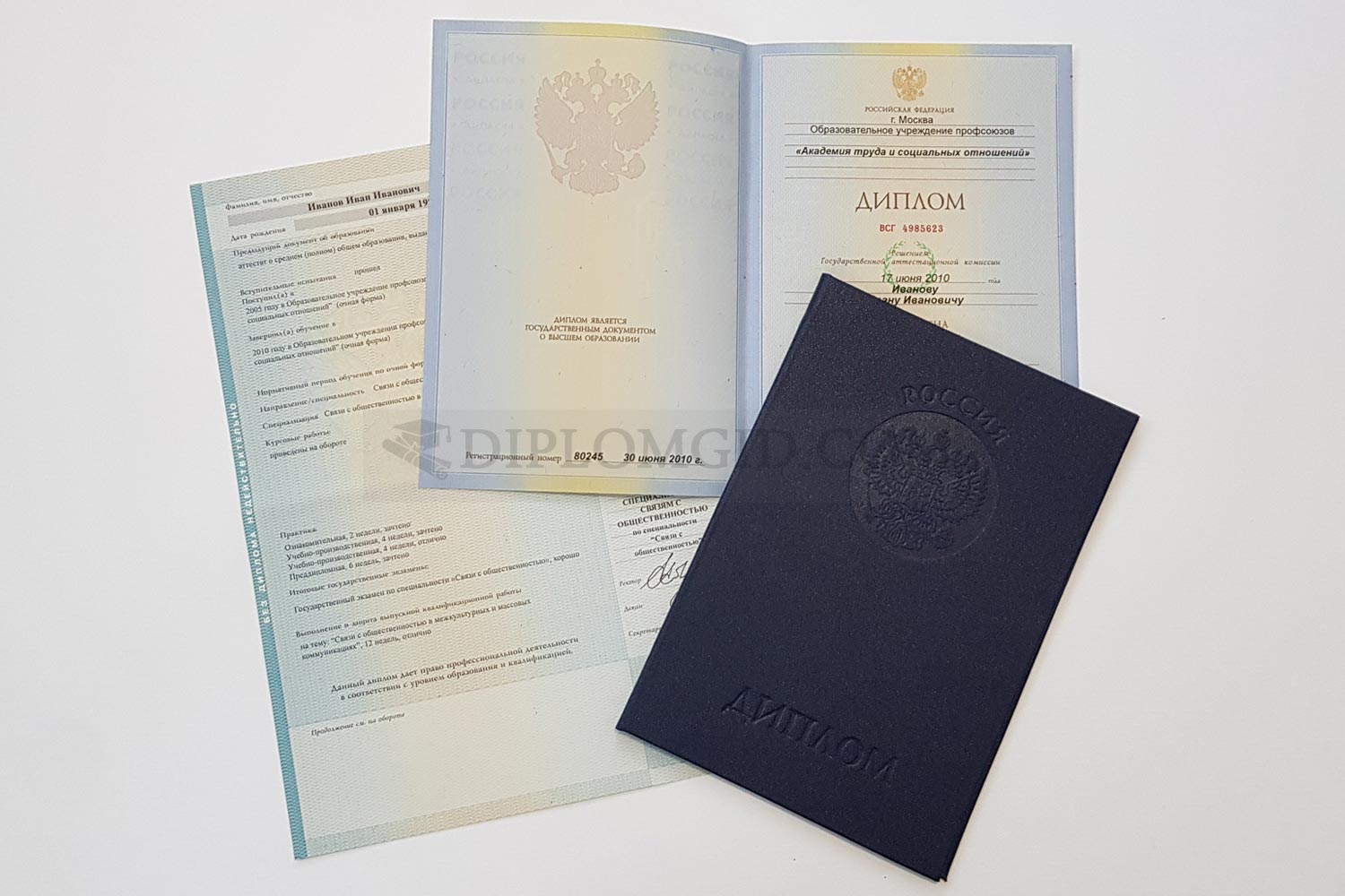 На нашем сайте Вы можете купить диплом нового образца без обучения, выданный любым ВУЗом Москвы и других городов России. В комплект входит бланк, обложка и приложение, оформленные по всем стандартам.